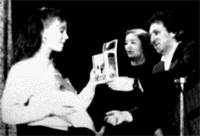 Президент фестиваля "Крок-3" в Киеве Иванов вручает Ольге награды за музыку