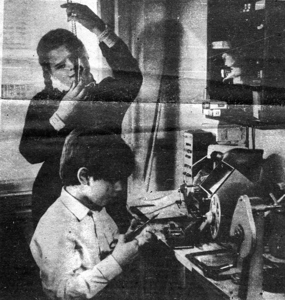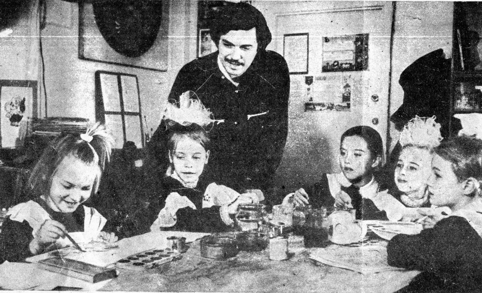 Руководти детской киностудией Юрий Сергеевич Воеводин человек очень разнообразных способностей, он и музыкант, и фотограф, и киноонератор, словом, на все руки мастер.